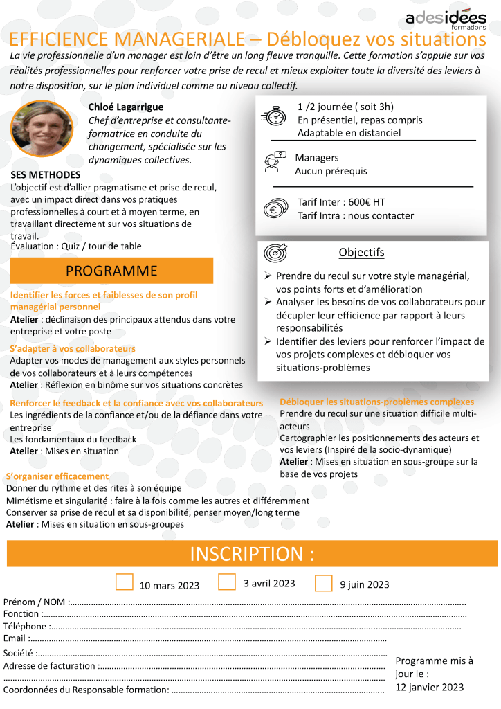 Efficience managériale – INTER Télécharger le programme S’INSCRIRE À LA FORMATION Suivez-nous LinkedIn Facebook Twitter YouTube Besoin d’aide ? Notre ADNNos formationsNos référencesMarketez vos formations Contactez-nous 11, Rue Rougemont, 75009 Paris cl@adesideesrh.com 01 46 34 85 04 Découvrez notre agence