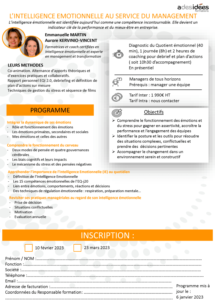L’intelligence émotionnelle au service du management – INTER Télécharger le programme S’INSCRIRE À LA FORMATION Suivez-nous LinkedIn Facebook Twitter YouTube Besoin d’aide ? Notre ADNNos formationsNos référencesMarketez vos formations Contactez-nous 11, Rue Rougemont, 75009 Paris cl@adesideesrh.com 01 46 34 85 04 Découvrez notre agence