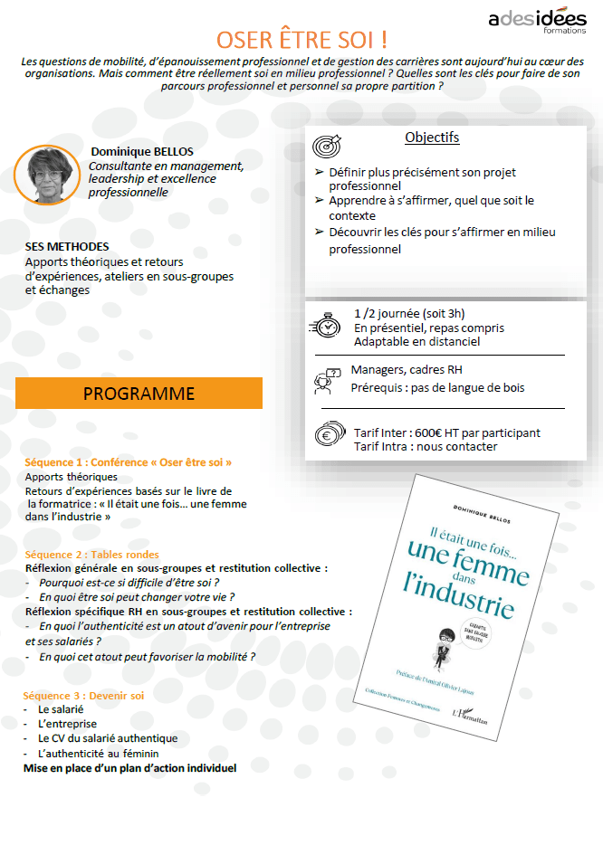 Oser être soi ! Télécharger le programme Présentation de Dominique Bellos S’inscrire Nous contacter Suivez-nous LinkedIn Facebook Twitter YouTube Besoin d’aide ? Notre ADNNos formationsNos référencesMarketez vos formations Contactez-nous 11, Rue Rougemont, 75009 Paris cl@adesideesrh.com 01 46 34 85 04 Découvrez notre agence