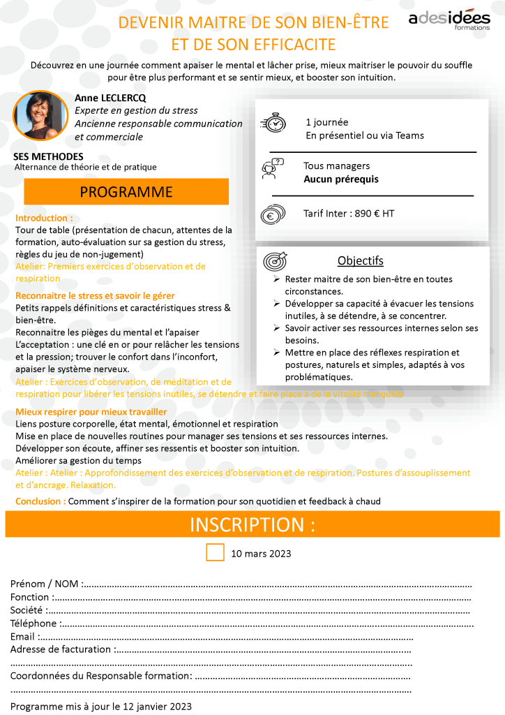 Devenir maître de son bien-être et de son efficacité – INTER Télécharger le programme S’INSCRIRE À LA FORMATION Suivez-nous LinkedIn Facebook Twitter YouTube Besoin d’aide ? Notre ADNNos formationsNos référencesMarketez vos formations Contactez-nous 11, Rue Rougemont, 75009 Paris cl@adesideesrh.com 01 46 34 85 04 Découvrez notre agence